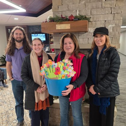 On a cold December day, TeamMates delivered over 150 handprint bouquets, made by mentors and mentees, to some patrons at the Aging Partners movie day. It was clear that the bouquets brought smiles to faces and brightened up the room.